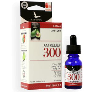 Description: The Fairwinds Relief 300 series brings your wellness to a new high, blending DOH-certified cannabis oil with powerful, clinically-proven botanical extracts. Designed for clear-minded support, the Relief 300 series leverages its cannabis power off of a super-serving of CBD and a micro-dose of THCA & THC to catalyze and enhance the effects. The AM Relief 300 contains an uplifting and awakening terpene profile typical of Sativa cannabis. However, these terpenes also play a vital role in increasing absorption and enhancing effects.