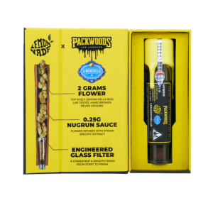 Packwoods x Lemonade collaboration includes 2G of Lemonade Premium Flower + .25G of Nugrun Sauce + With Our Engineered Glass Filter and Rolled in our PACKWRAP 100% Tobacco Free Wrap